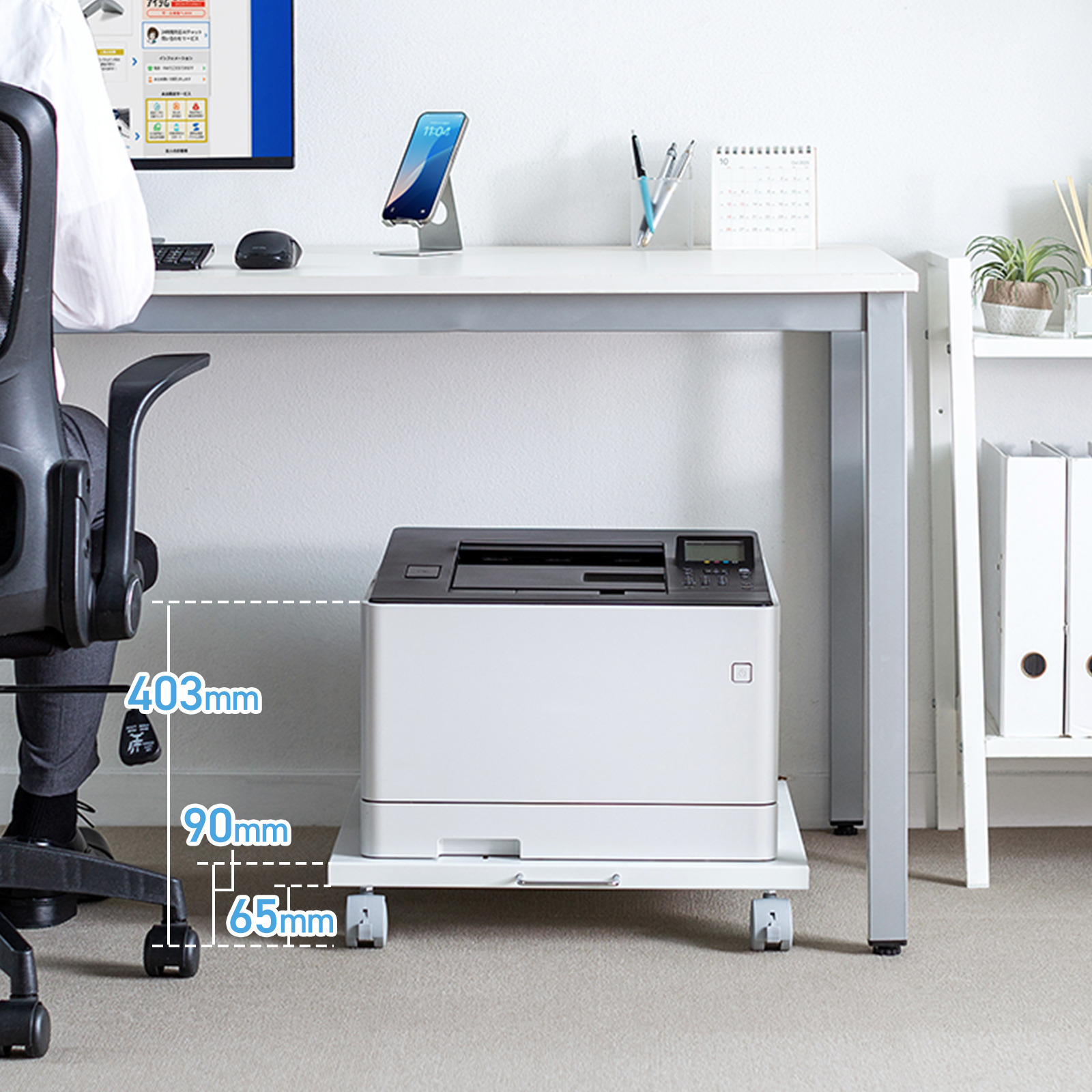 - 堅牢なスチール製プリンタスタンドです。