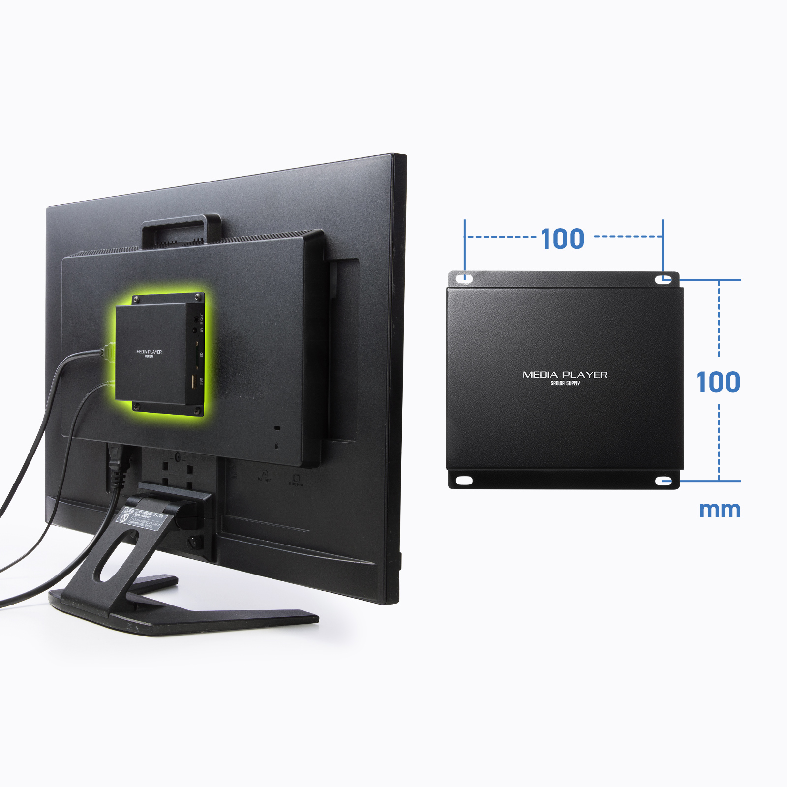 - VESA規格100×100に対応し、モニター裏に設置することができます。