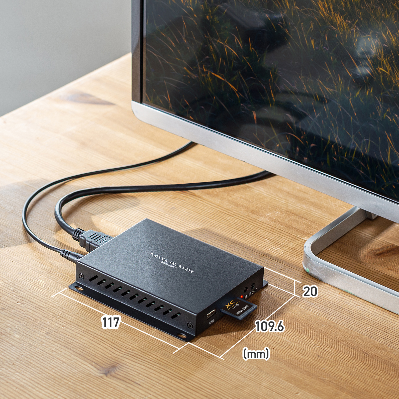 SDカード・USBメモリを挿すだけで、動画や写真、音楽をテレビやモニターで再生できます。