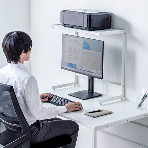 デスクの上の小物やプリンターなどの機器を置くことで、デスクを広く使えます。