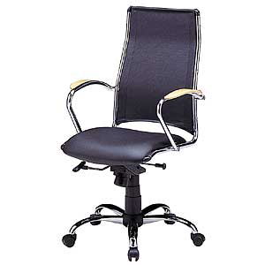 木をアクセントとして使用したハイバックチェア。